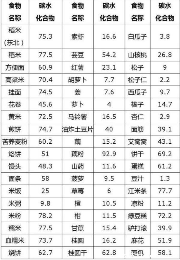 大家对比着看碳水化合物食物一览表减肥的时候还需要注意,碳水给人体提供能量的物质,千万不能吃太少或者不吃含碳水化合物的食物。一旦我们身体缺乏了碳水,我们的机体活动就会变得很迟缓,像大脑混混沉沉的,没力气,严重的会导致不来月经。